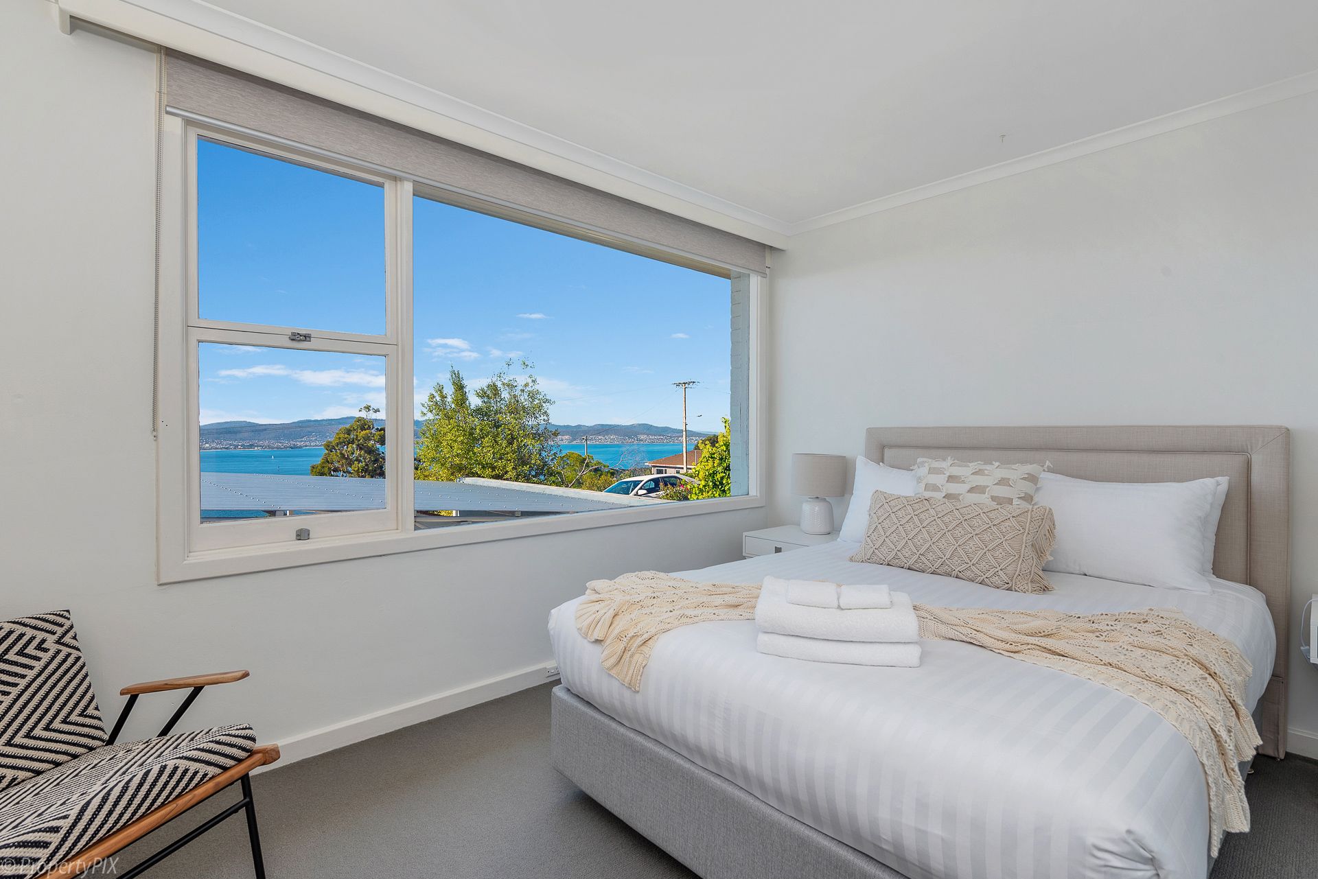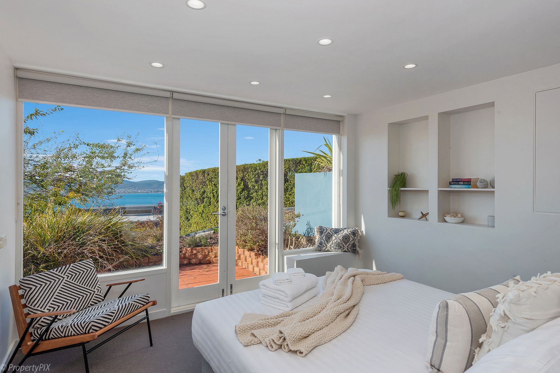 Birngana is a stunning four bedroom tri-level home with spectacular panoramic views of the sparkling Derwent River, Hobart city and beyond. Situated in Sandy Bay, one of Hobart's most sought after locales, this comfortable and stylish accommodation is filled with natural light and boasts plenty of space for groups of up to 8.