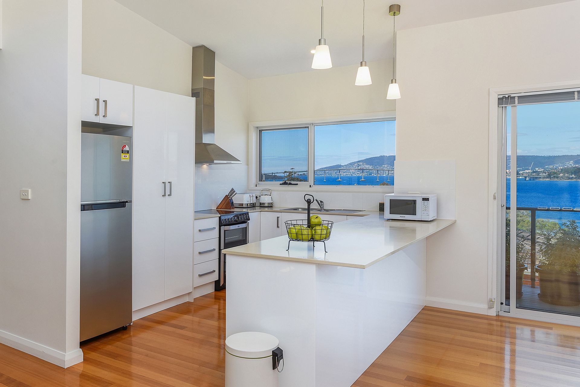 "Deep Blue" not only boasts a spectacular location - it is your Hobart home-away-from-home, providing a high level of both style and comfort, making your stay here a pleasurable one. The home features open plan living at its finest, with ample living, kitchen and dining space flowing through to the decks and allowing indoor living to spill outdoors. Windows at every turn frame the magnificent, sweeping views, providing you your very own living art gallery.