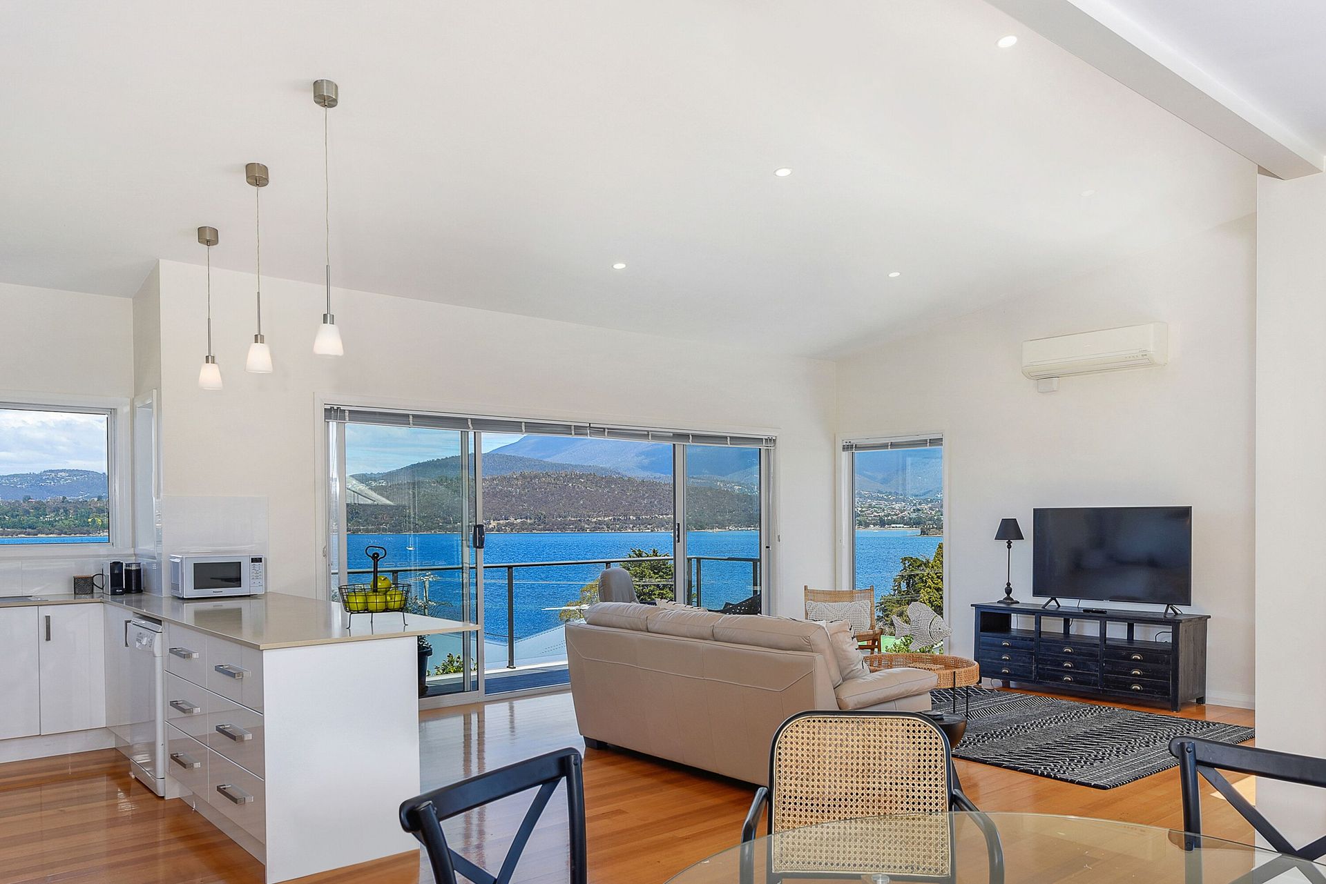 3 minutes walk down the lane below you is the edge of the river Derwent with its incredible views over the water to Mt Wellington/kunanyi and the wonderful Clarence foreshore trail. This waterfront trail links up to the bobbing boats of charming Geilston Bay (1km) to the north; to the south it meanders through beaches, marinas and the best fish & chip shops, all the way through to Bellerive beach and Howrah.