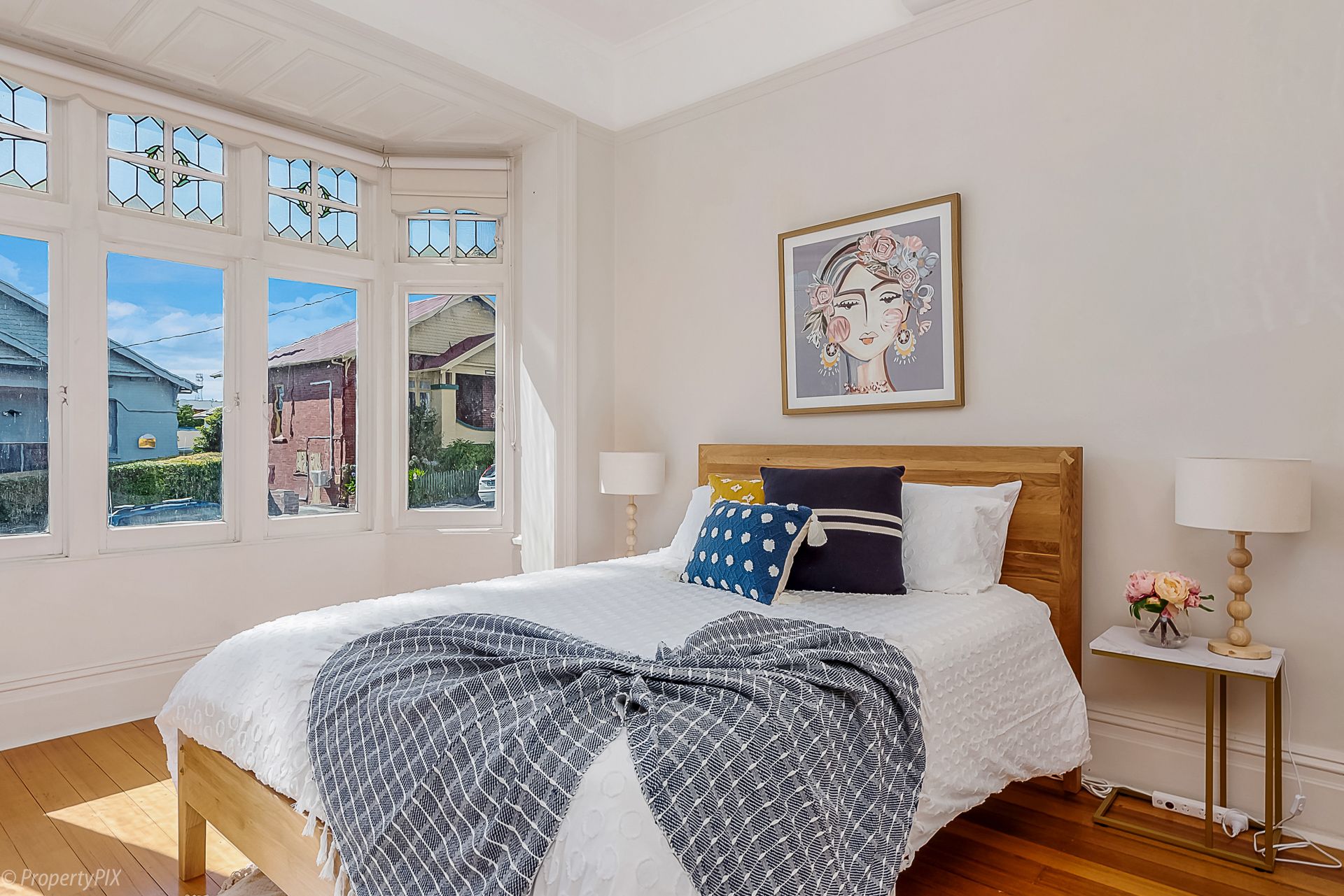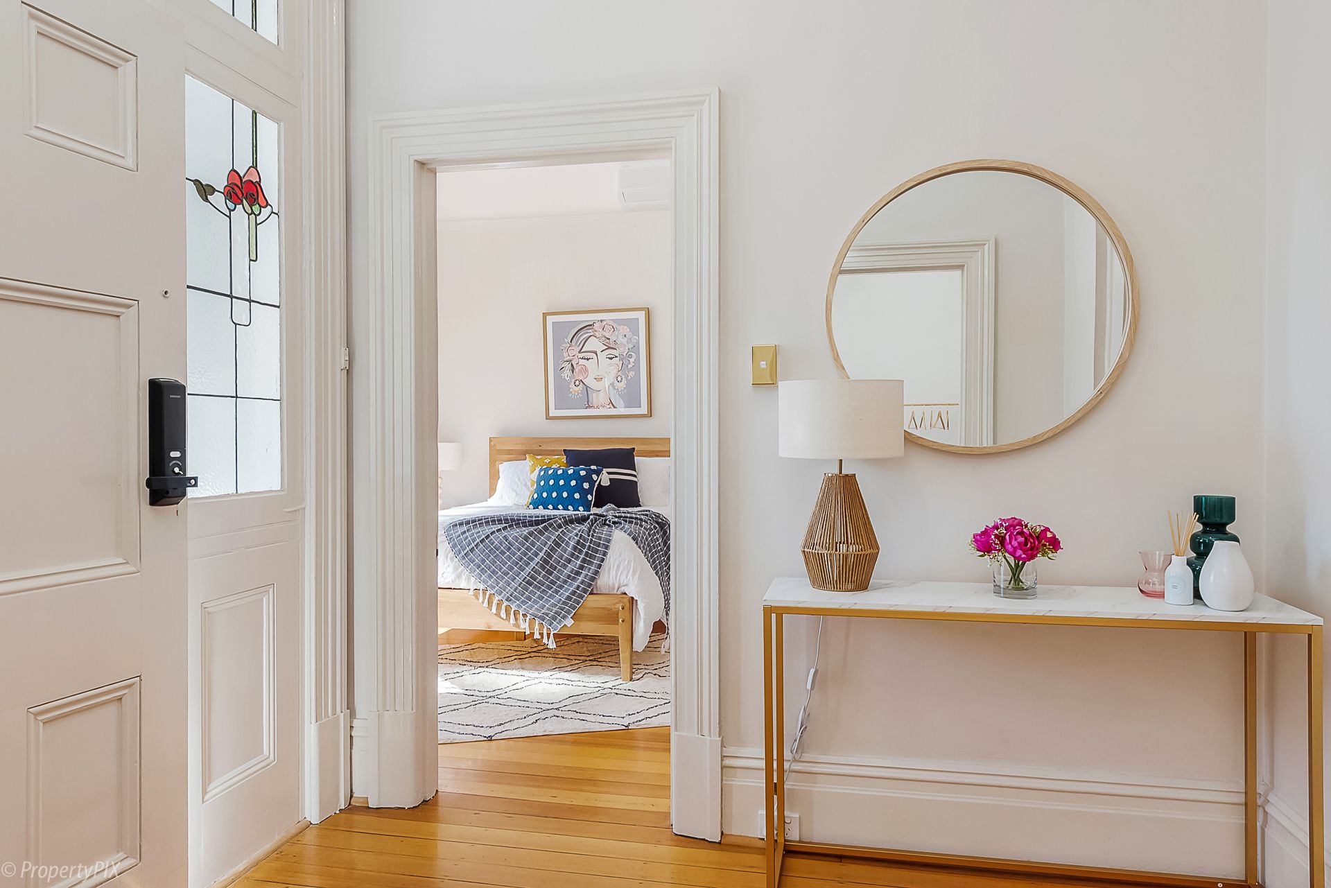 With its stunning original lead light windows, high ceilings, fireplaces (decorative only) and polished floorboards, the house retains gorgeous original features while exuding a fresh and contemporary vibe.