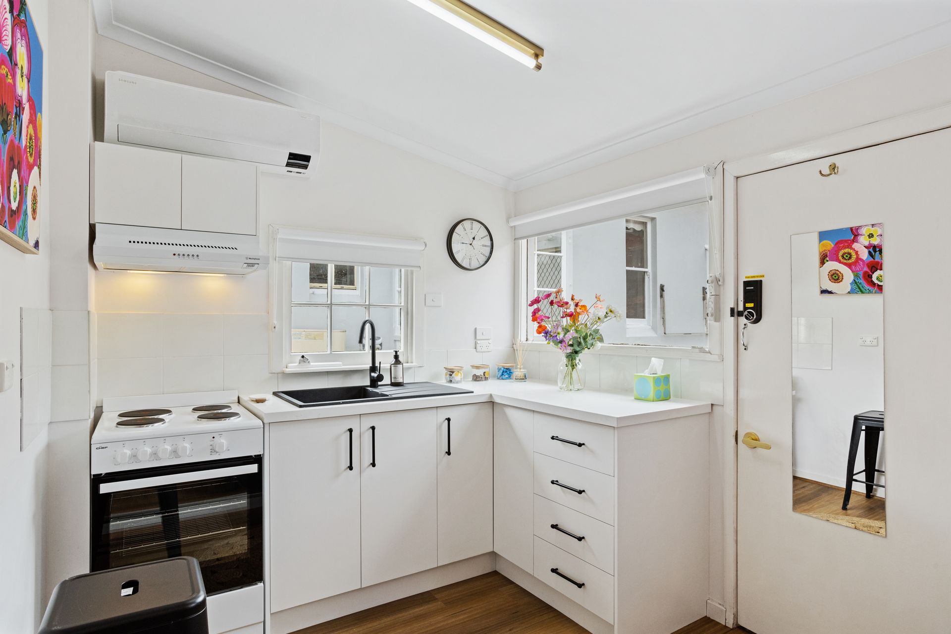 Warneford House is artfully furnished with both elegance and comfort in mind. Relax on the generous lounge in the living room, enjoy a lazy coffee in the bright and spacious kitchen, or dine al fresco in the huge paved two-tiered private courtyard.